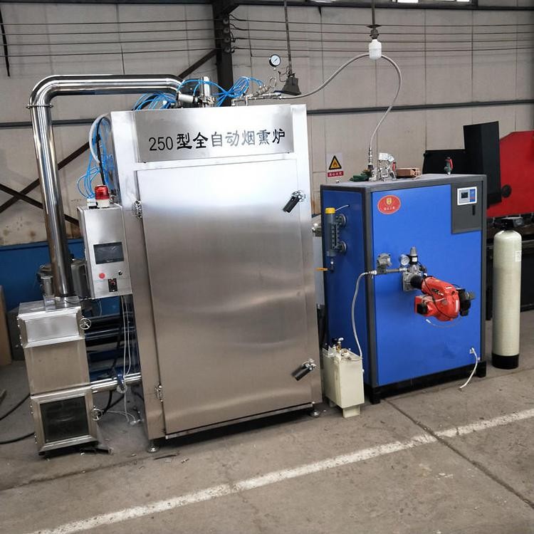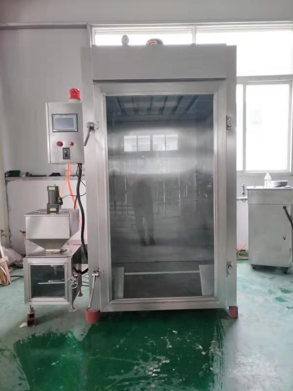 烟熏炉,主要适用于鸡肉,鸭肉,鱼肉,风干肠,腊肉,烤鸭,香肠等各种肉类,鱼类制品的烟熏工艺设备,通常具有干燥,烘烤,上色,蒸煮等功能。有30型小烟熏炉,适合于小型生产,小作坊,有的客户接不上三相电就用小型的红肠烟熏炉,一次生产30公斤,像烧腊肉烟熏炉,烧鸡烟熏炉,烤鸭烟熏炉鸡,烤鸭等一般都是在烟熏炉内两个小时就可以完成。有些需要哄的比较干的那种需要的时间就比较长例如腊肠:一般都是需要6到 12个小时之间,发烟均匀,是在底部发烟,有热风循环系统,烟熏的非常均匀。
