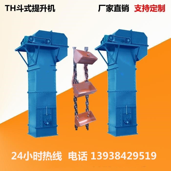 本系列斗式提升机适于输送粉状,粒状及小块状的无磨琢性及磨琢性小的物料,如:水泥、石块、砂、粘土、矿石等,由于提升机的牵引机构是环行链条,因此允许输送温度较高的材料(物料温度不超过250℃)。一般输送高度可达40米。