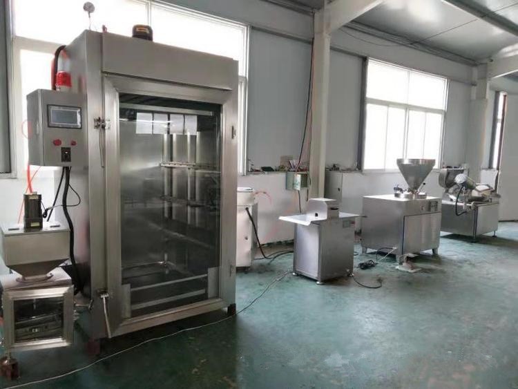 烟熏炉烟熏炉是肉制品熟化过程中必不可少的设备,具有耗能低和温升快等优点。具有蒸煮、干燥、烘烤、烟熏、排风、清洗等功能。主要由蒸熏室、发热系统、排风排气装置、电磁盘、挂车、全自动电脑板等构制而成。主机框架夹层均填充进口耐高温聚氨脂发泡材料一次成型,使保温效果增强,密封性好,节能高效。各工艺参数(时间、温度等)由显示屏显示、控制,可确保准确无误。该设备使用方便,操作简单。