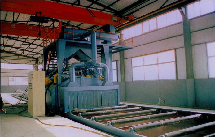该系列是钢板、型钢多功能表面处理设备,选用先进的双元盘高效抛丸器,抛射出高速密集的弹丸束,打击在原始的钢材表面上,使钢材各面上的锈蚀层、焊渣、氧化皮及其污物迅速脱离,获得一定粗糙度的光洁表面,提高了漆膜与钢材表面的附着力,并提高钢材的抗疲劳强度和抗腐蚀能力,改善钢材内在的质量,延长其使用寿命。