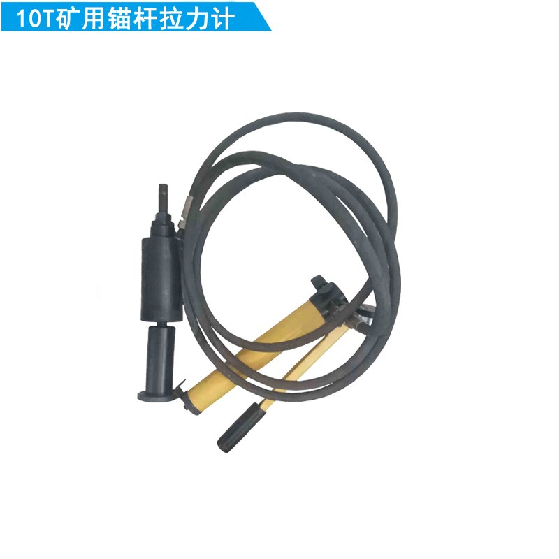 MSL-100锚杆拉力计|锚杆拉拔仪设置于矿用巷道内,包括千斤顶和油泵,并与巷道内的锚杆位置对应,所述锚杆拉力计设有高压油管,千斤顶和油泵分别设有油管接头,油泵的油管接头设有压力表,油泵将油挤压通过高压油管输送至千斤顶内,油管接头的压力表能够感应回油压力,并显示具体压力值,从而检测出锚杆锚固力。