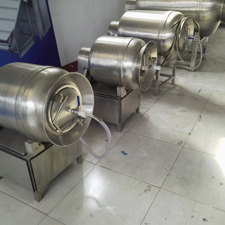 滚揉机适用于西式香肠、火腿、培根、烤肉以及禽类、中式酱卤类、休闲类肉食品的腌制加工。特别对传统中式产品加工,加入滚揉处理工序,可以缩短腌制浸泡时间、改善效果,提高肉品品质。