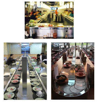 旋转小火锅(又称旋转火锅、回转火锅、回转小火锅),是在中国传统火锅础上借鉴日式回转寿司发明的一种新型餐饮方式。将火锅食材放在容器里摆在运输带上,运输带围绕餐厅的座位而行,顾客可根据个人喜好来选择不同的食材。节省空间、简单易操作、绿色饮食回归自然且环保、卫生。