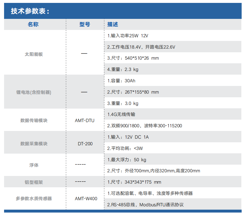 该系统以浮标为载体的水质监测系统是化学分析仪器和各种水质传感器的集成,并结合了现代化的数据采集处理技术、数据通信技术、浮标设计及制造技术,是实现环境水质监测自动化、网络化、在线监测的有效技术手段。AMT-FB301多参数水质监测浮标系统的应用领域广泛,可用在水产养殖、工业生活污水排放、农业灌溉用水、环境监测等领域。