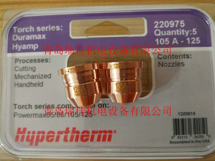 美国海宝powermax125机用等离子切割机易损件,125A海宝等离子电极220971,美国海宝125A海宝喷嘴220975,125A海宝割嘴保护帽220976,涡流环220997,固定罩220977,欧姆感应固定罩420156。美国海宝125等离子割炬本体428147,海宝125割炬固定套筒428145,美国原装进口海宝powermax125等离子切割机。