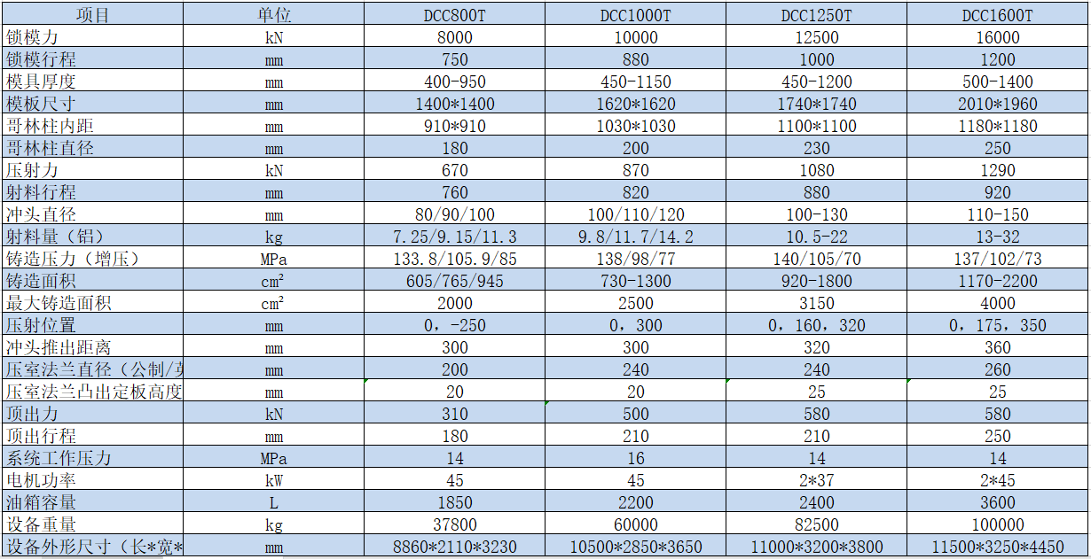 产品机型包括88T-4500T,通过20多年的不断改良优化,益格的压铸机采用优质的液压元件,配有专业的工业电脑,具有速度快、生产周期短、操作方便、性能稳定、安全可靠等优点,并通过了国家铸造锻压机械质量监督检测中心认证。