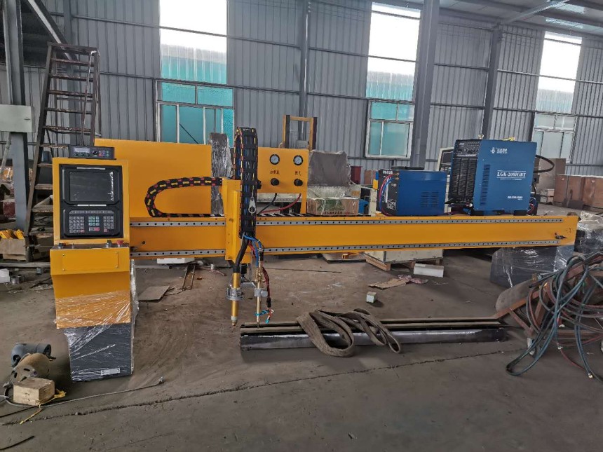 本款设备为龙门式结构,横向跨度有3m-10m等多种规格,均采用双轴心导轨、双边驱动,可根据用户要求配置多把火焰、等离子割炬及配套自动调高系统,可配置成数控切割与直条切割两用,以及相贯线使用。两边分别以齿轮齿条传动,工业造型结构,先进的人性化工控技术,配置高端等离子系统、传动系统、控制系统主要针对中厚板切割。