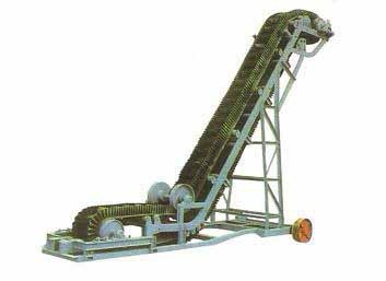 其结构是在平形橡胶运输带两侧粘上可自由伸缩的橡胶波形立式“裙边”,在裙边之间又粘有一定强度和弹性的横隔板组成匣形斗,使物料在斗中进行连续输送。大倾角皮带输送机(挡边带式输送机)可广泛用于煤炭、粮食、建材、化工、水电和冶金等部门,在环境温度为-19℃~ 40℃范围内,输送堆积比重为0.5-2.5t/m?的各种散状物料。对于输送有特殊要求的物料,如高温、具有酸、碱性、油类物质或有机溶剂等成分的物料,需采用特殊的挡边输送带。