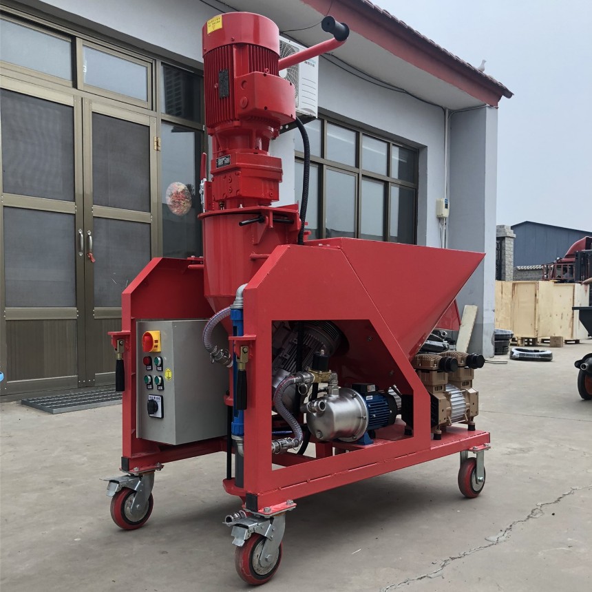 石膏喷涂机设备性能稳定基本上它不会出现空鼓或者是返工等方面的情况.。大大节省了人工费用。喷涂快,一面墙只需要几分钟既可喷涂完成。喷涂均匀,在喷涂的时候使用的是气压与喷嘴,所以喷涂的厚度比较好掌握,不会存在不平整的现象。根据喷涂厚度、输送距离调整喷头工作压力,适当调整气压与水压,喷距离墙面15cm~20cm。喷涂时要做到动作规律,速度均等,从左到右,从下至上将石膏均匀的喷涂到墙面上,根据墙面定位条控制喷涂厚度。用带槽刮板一次刮平,刮平时采用从下至上的方法。如果喷涂石膏浮雕装饰产品的图案花纹较浅,只有5~9mm左右,效果就会差得多。看表面光洁度:由于喷涂石膏浮雕装饰产品的图案花纹,在安装刷漆时不能再进行磨砂等处理,因此对表面光洁度的要求较高。只有表面细腻、手感光滑的喷涂石膏浮雕装饰产品安装刷漆后,才会有好的装饰效果。