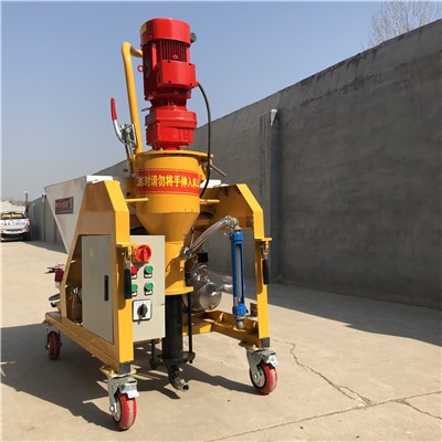 石膏喷涂机3、利用液压伸缩杆,顶顶、顶地的方式,可以在十秒钟内固定好机器,而且底盘不受力,移动机器只需像放千斤顶一样放开,主杆靠自重下来,底脚自动提起,这种方式是*快、*牢固的。其他厂家是做不到的。4、抹板宽度按照套房门口(80cm)设计,比机身宽3cm可以自由出入里外屋,阴阳角完全到位,其他厂家无法做到。5、抹板背后装配有两个微型振动器,您没有必要在担心空鼓和抓墙力。6、本机装配经过密封的万向轮,可以轻松移动到你想去的任何地方。7、完全模仿人工的巧妙设计。抹板与墙体形成抹灰角度,抹板背后有两个震动器,上升时震动器自动开启,输送带源源不断的将灰送进抹口,距顶45cm输送带自动停止供灰,因为通过计算,抹口的灰已经足够抹到顶,抹板自动改变角度,到顶自动或手动下来,到底自动停机。