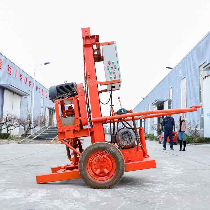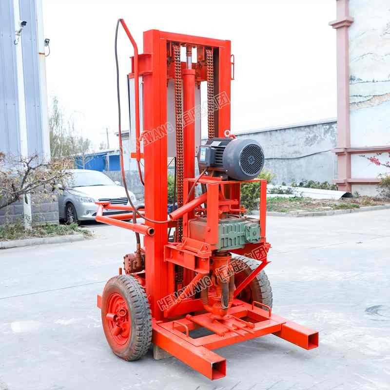 三相电液压打井机适合泥土层、流沙层和少量的岩层,主要用于钻凿民用吃水井、灌溉井、地源热泵空调井、降水井,打小型基础桩,通声测管等。三相电液压打井机轻便小巧,成孔速度快,噪音小,机械自动上卸钻杆,移动方便。