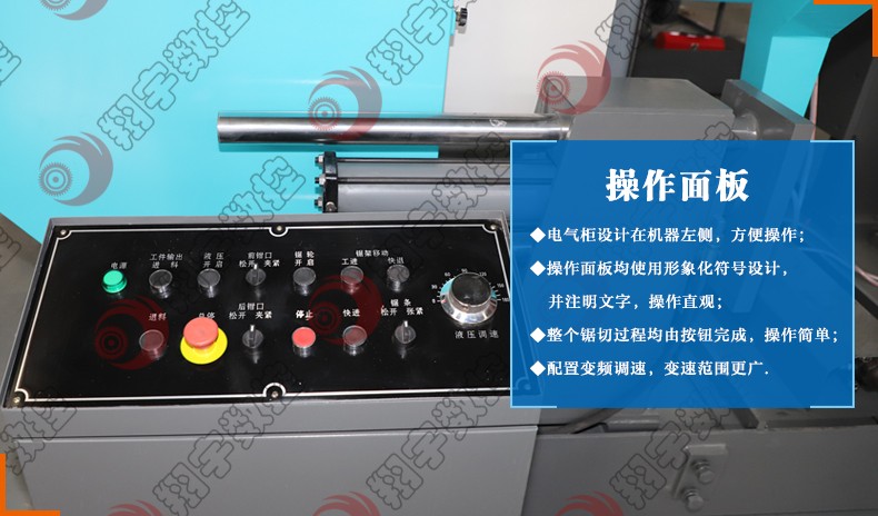 2、锯床是由机械、电气、液压等部份组成,具有自动夹紧、自动进刀、切割完毕锯架自动上升(即退刀)的功能。