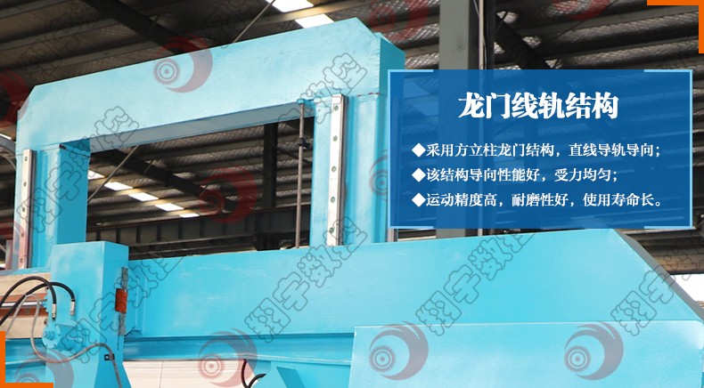 1、行程导轨采用进口的线性导轨。主传动采用德国技术的螺旋伞齿轮减速机。锯梁升降由平衡式双油缸同时工作,由四根线性直线导轨定位。切削速度液压控制,无级调速。