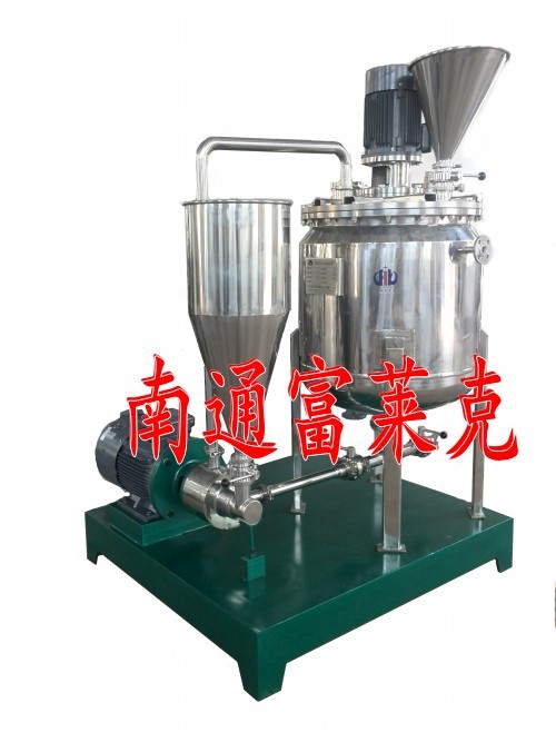 目前,不少企业在固体粉末与液体的混合均质工艺过程中,还是采用传统的方法进行固液搅拌混合从而造成了车间内粉尘飞扬环境污染,粉料浪费严重等的局面,同时在粉末与液体搅拌混合中还会产生团聚沉淀结块等现象,严重影响了产品质量和档次。这些企业如食品制药,精细化工等在工业生产过程中固体粉末与液体在进行搅拌混合时所必要的工艺方法之一。所以,有的企业已经认识到固液在线封闭式混合均质是目前比较理想的混合工艺。这种混合技术能够在管线内高速吸粉快速混合,解决了固液混合时的粉尘飞扬环境污染等问题以及在浆料混合搅拌时所产生的悬浮沉淀及团聚结块现象,同时还解决了在搅拌混合工艺中直接关系到产品的卫生质量、能耗成本、环境保护等诸多因素,故固液混合技术已经成为同行业在竞争时的核心优势。