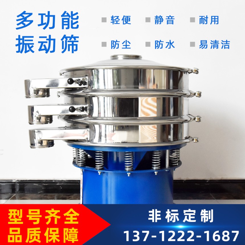 圆形振动筛可广泛应用于食品、医药、颜料、国防、化工、冶金、地质、磨料、陶瓷、矿业、电子等行业的浆料、粉料、颗粒生产分级过滤,该产品规格多样,层数可选,盟源牌颜料粉振动筛筛分均匀,304材质不污染物料,动力强劲。