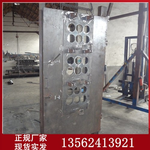 2、抗冲击波门门扇为弧形壳板、井字筋板、槽钢圈梁组焊而成。
