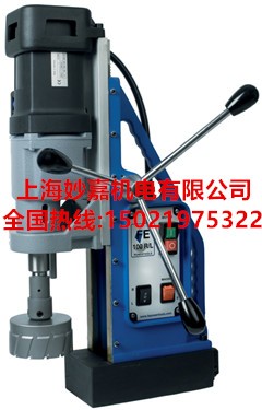 如果您是钻不绣钢,烙材质,锰钢等,像这样硬度高,粘度高的材质,请一定要选用FE100R/LS的机器,不是所有机器都像宣传那样样实用,FE100R/LS具有无级变速、扭力保护,双绝源保护装置,FE100R/LS在受载时,最慢的转速40转/分钟,扭力可大可小,钻材质硬,粘度高的板材,扭力调到很大,转速调到很低,大家都知道,转速越低,扭力越大,转速越高,扭力越小,FE100R/LS最为强悍的是过载保护装置,由于人工操作而导致机器过载,机器会自动停机,有效的保护电机,不致于电机烧坏,使您的钻孔更加轻松。独特的攻丝功能可攻M4-M36的内丝,并且磁座还可以旋转120度,是真正具备空心钻,麻花钻,攻丝的一体化的多功能磁座钻.