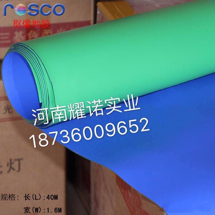 美国rosco进口抠像地板胶,幅宽1.6米,长度40米,正反两面,蓝色一面,绿色一面。抠像地胶表面平整,使用高密度地胶制成,配合美国进口5710#,5711#,5721#等现有抠像漆,适合于任何平整地面铺设。在普通抠像或用于抠像网格追踪,网格定位有较好的抠像效果。避免了以前木质蓝箱和玻璃钢蓝箱地面不能长时间使用、重复刷漆,主持人不能穿高跟鞋等一切不利于脚踏的难题。适合于电视台、气象局、影视抠像类, 易清洁,免维修,不怕水浸和油污,等化学物质的侵蚀,一般用湿拖布清扫即可,省时省力。安装后无需打蜡,只需一般日常保养便可光洁如新