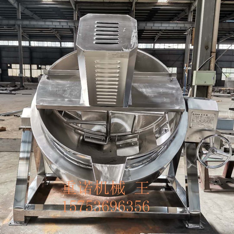 卤猪蹄夹层锅 卤煮夹层锅有些客户问你们的夹层锅都是用来做什么用的,夹层锅可以用来卤制,蒸煮都可以,要是熬粥或者是熬汤类的,为了防止糊锅还可以加上搅拌,搅拌就是能够在锅底一直搅拌,卤猪蹄夹层锅我们的搅拌采用的是聚四氟乙烯材质,耐高温耐用,有了自动搅拌就大大节省了人工,无需人工从而也为客户节约了成本。