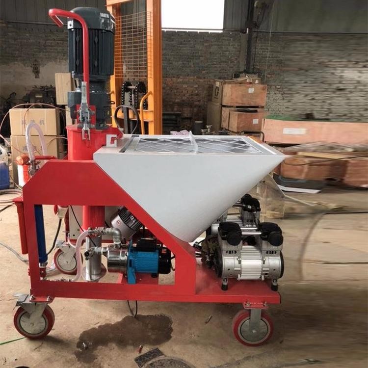 石膏喷涂机所喷的石膏粘结性能好,对墙体基层作清理后,该材料可直接使用于各种墙体抹灰。调节流量大小,调出比较好的喷涂效果。喷头与送料管的连接可以旋转,便于操作。施工效率高,质量好体积小巧,便于现场搬运,而且配件费用低,维修简单。使用方便、速度快、省材料、省人工、更省钱,一台机器只配三个人。省水、省料,可有效降低成本,亨冠石膏喷涂机操作简单速度快、效率高、劳动强度低。