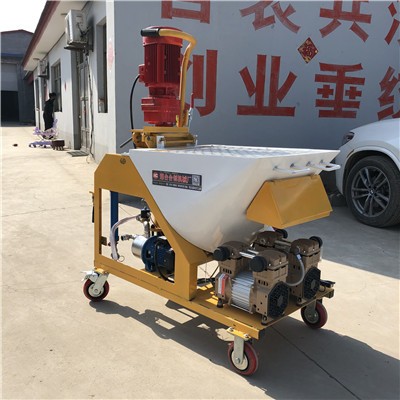 石膏喷涂机机是一款多功能喷涂机,设有水泵与水计量功能。具有自动搅拌、泵送、粘结、喷涂联合作业功能。石膏抹墙机,适宜 不同特性与不同用途的预拌干混砂浆施工;不受地区和环境条件及喷涂面形状的限制,设置自动送料机构;具备自动连续搅拌功能;压力控制保护机构,实现远程控制操作,一键启动自动上水干粉搅拌省时省力,移动方便操作简单。
