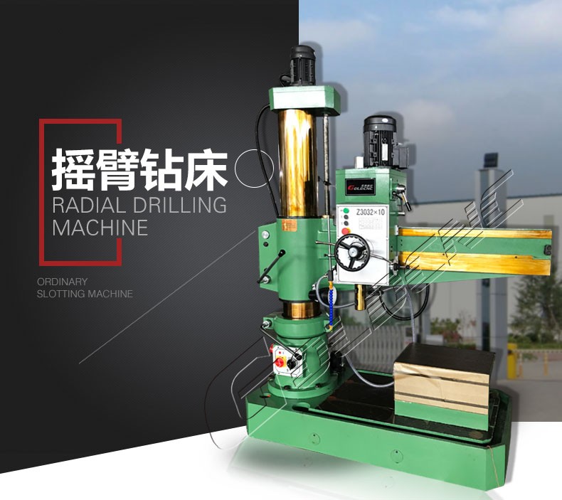 摇臂钻床,也可以成为横臂钻。主轴箱可在摇臂上左右移动,并随摇臂立柱回转?180?的钻床。摇臂还可沿外柱上下升降,以适应加工不同高度的工件。摇臂钻床加工范围广,可用来钻削大型工件的各种螺钉孔、螺纹孔和油孔等。适用于 锅炉、桥梁、机车车辆和造船,机械行业,等行业。摇臂钻床主要由底座、内立柱、外立柱、摇臂、主轴箱及工作台等部分组成。