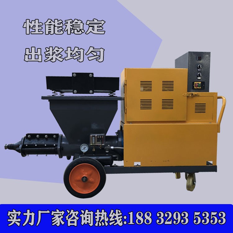 水泥砂浆喷涂机节能。冲洗过的管道必须再次进行润管操作,否则很容易再次产生堵管,因冲洗过的管道会残存部分水分和砂,砂浆遇水易致离析,从而降低了砂浆的流动性而产生堵管。砂浆输送设备产生堵管时应立即停机,先松开水平与垂直管道连接的接口,可以尝试再次启动输送设备,水平管内轻微的堵管都可以通过再次启动机器进行排除。一般情况下堵管都在弯头或垂直位置处,垂直位置的堵管只能用水冲洗管道进行排除,选择合适的软管进行冲洗处理,应从下往上进行冲洗,垂直距离过高时,还应卸开中间部分管道进行处理,中间管道拆卸时应注意安全。冲洗完成后重新装回管道,再次开始输送砂浆前应进行润管处理。另外以下情况也会造成堵管,需要注意:砂浆颗粒太大堵喷嘴、堵喷头致堵管。