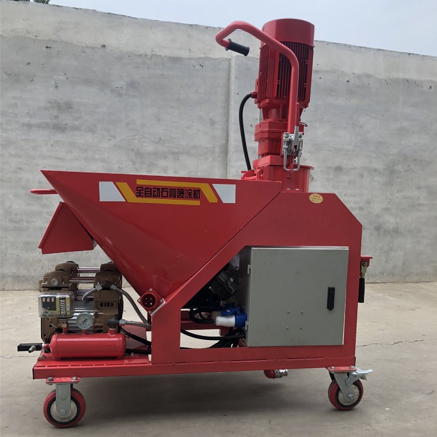 石膏抹墙机产品的特点,该产品技术、性能稳定,工作可靠、操作简单,是采用螺杆增压技术的基础上,根据粉刷石膏的速干特性,及高粘度特性,精心研制制造的新型装饰施工机器。砂浆输送管一旦堵塞时,可将开关转换到手动位置,只开空压机,就泵头前的接头卸下,然后将喷涂朝下堵实,使风压产生反向压力,从而将输送管内的余浆吹出。后把接头装上,即可开始正常工作。增压胶管和增压螺杆为易损件。新款全自动干粉石膏喷涂机德国进口,该产品技术、性能稳定、工作可靠、操作简单、经久耐用,一键启动自动上水干粉搅拌。并且非常轻便,在粉墙过程中,工人可以像推小车一样来回行走。