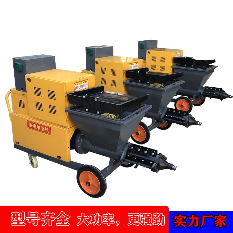 优质墙面全自动砂浆喷涂机广泛用于矿山、隧道、涵洞、地铁、水电工程、地下工程及护坡的混凝土喷射施工作业。在国内目前由于种种原因,干式喷浆机仍是主要的喷射作业设备。但是随着人们环保意识的增强以及对喷射混凝土质量要求的提高,已有越来越多的湿式喷浆机取代了干式喷浆机的使用。在一些国际招标的大型水利工程中,如二滩水电站,黄河小浪底工程,二峡工程等,均是采用湿式喷浆机作业。国内目前使用的各种湿式喷浆机多是从国外引进的设备。近几年来。国内一些单位也开始开发研制出几种湿式喷浆机,但生产规模尚有待于扩大。概括起来,湿式喷浆机大大降低了机旁和喷嘴外的粉尘浓度,消除了对工人健康的危害。生产率高。干式喷浆机一般不超过而使用湿式混凝土喷射机。