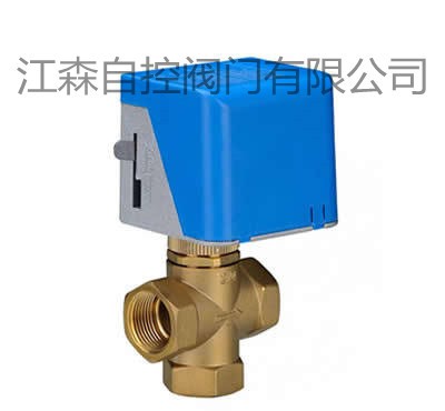 VA7010系列开关式电动三通阀由VA7010系列阀门驱动器和VA7010系列铜阀组成。用于控制冷水或热水空调系统管道的开启或关闭,达到控制室温之目的。驱动器由单向磁滞同步电机驱动,阀门弹簧复位。阀门不工作时处于常闭状态,当需要工作时,由温控器提供一个开启信号,使电动阀接通交流电源而动作,开启阀门,冷冻水或热水进入风机盘管,为房间提供暖气或冷气,当室温达到温控器设定值时,由温控器提供一个开启信号,使电动阀接通交流电源而动作,开启阀门,冷冻水或热水进入风机盘管,为房间提供冷气或暖气:当室温达到温控器设定值时,温控器另电动阀断电,复位弹簧使阀门,从而截进进入风机盘管的水流。通过阀门关闭或开启,使室温始终保持在温控器设定的温度范围内。VA7010系列电动阀之驱动器与阀体采用螺套连接方式,可以在阀门安装之后,再安装驱动器,现场装配。接线灵活、方便。驱动器之平面设计可以贴近墙面安装,占用空间小,产品可靠耐用,工作噪音低,并能在隐蔽式风机盘管装置内常出现的高温环境可靠工作。