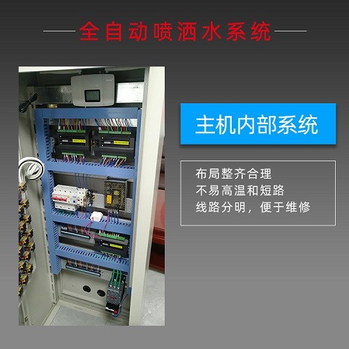 整套系统由PLC(可编程控制器)电路控制、行走、喷洒、供水四大部分组成,整个系统喷洒养护过程中的每个环节控制,是由一台PLC进行控制,能够实现全自动化养护。智能喷淋养护设备不但可人工手动控制,也可以通过PLC可编程控制器自行设置小车行走速度、喷洒时间及停顿时间等参数。