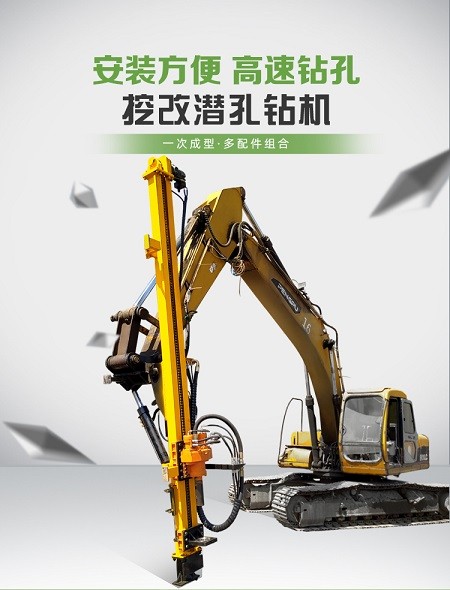2、挖改钻机充分的结合了挖机的行走方便和钻机的打孔速度等优势,可以适合于复杂工况的打孔作业。由于挖改不用去小臂,所以既能够保持挖机功能,能够快速转换挖机和钻机,又能够利用挖机臂调整不同角度的打孔。