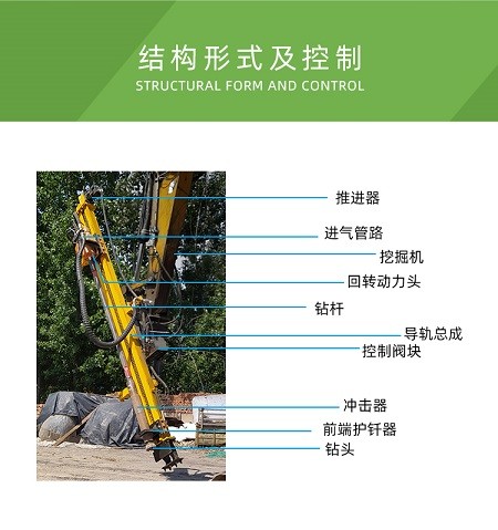 5、整体性好:挖改钻机机打孔排渣均使用挖机液压系统,钻机,排渣用空压机均安装在挖机上面,移动方便。