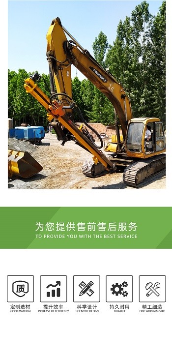 7、多种凿岩机组合适应客户不同的打孔需求:我公司目前有:挖改冲击钻机,挖改潜孔钻机、挖改切削钻机三种类型造,适合客户的不同打孔需求。