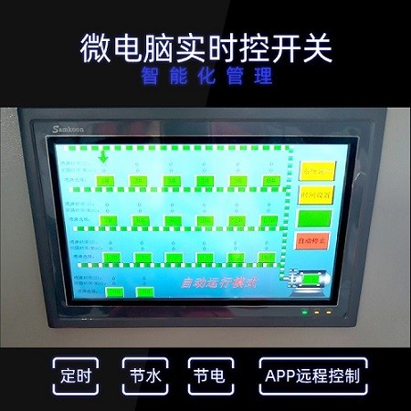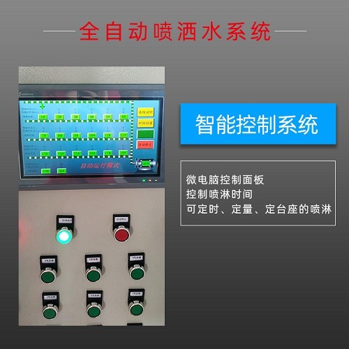 整套系统由PLC(可编程控制器)电路控制、行走、喷洒、供水四大部分组成,整个系统喷洒养护过程中的每个环节控制,是由一台PLC进行控制,能够实现全自动化养护。智能喷淋养护设备不但可人工手动控制,也可以通过PLC可编程控制器自行设置小车行走速度、喷洒时间及停顿时间等参数。