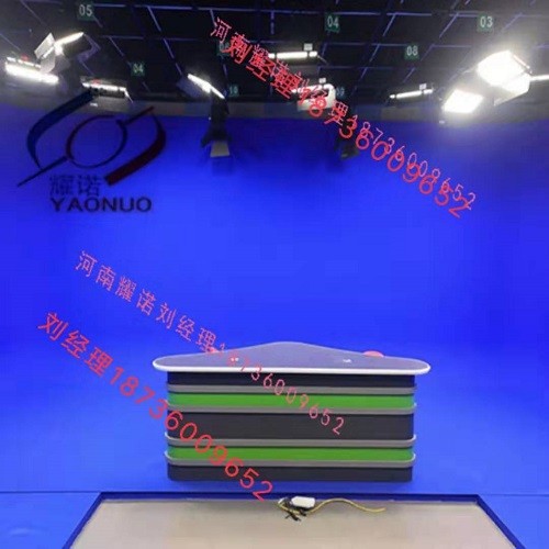 蓝箱的形状主要有三种:一墙一底“L”型蓝箱,对应单个摄像机正面机位;两墙一底扇型蓝箱,对应两台摄像机左右两个机位;三墙一底“U”型蓝箱,对应三台摄像机左、右、前三个机位。