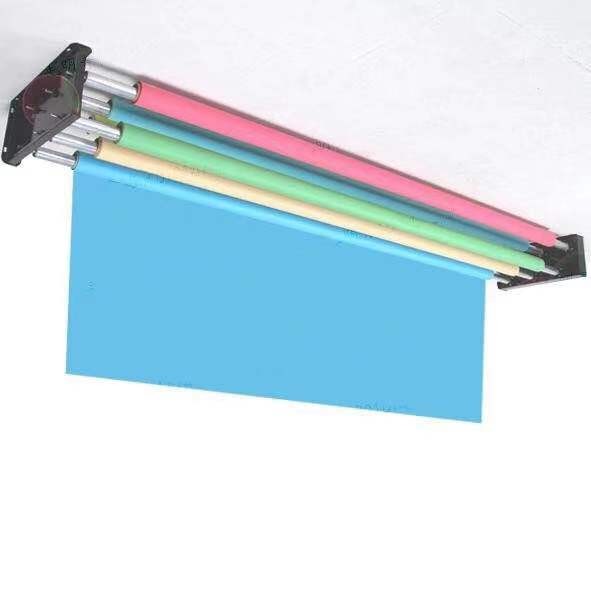4、将装好的背景纸(或背景布)挂在挂钩上。