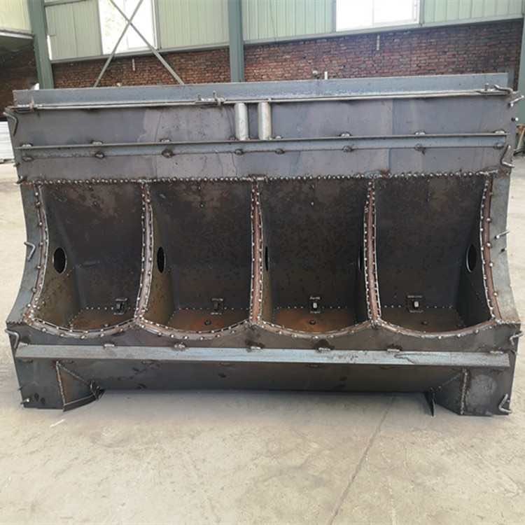 本模具具有结构合理,使用方便,简单易学,使用寿命长等优点。近年来,养殖业发展迅猛,简便节约的饲喂设备一直没有得到很好的解决,本公司研发的猪用水泥食槽模具解决了这一难题,做出来的猪槽在原有的基础上又添加了自动下料器,当猪想要吃食的时候,可以自动下料,比其它料槽节省饲料,投放市场以来,深受广大用户的认可和好评。本产品做出的猪槽具有全天“侯食”功能,猪只生长均匀,而且节省饲料,节省人工,合理卫生,使用它:每头猪可节省饲料20— 30斤,提前出栏20— 30天左右,效率是“地上抛食喂法”的5— 10倍,是现代养猪场户理想的更新换代产品。猪槽是由水泥石子大沙一次浇注而成,贮料箱可贮料25至50公斤,自动下料,不堵料、不溢料,具有:节约饲料,节省人力,清洁卫生,减少疾病传播,缩短饲养周期,降低饲养成本的优点。