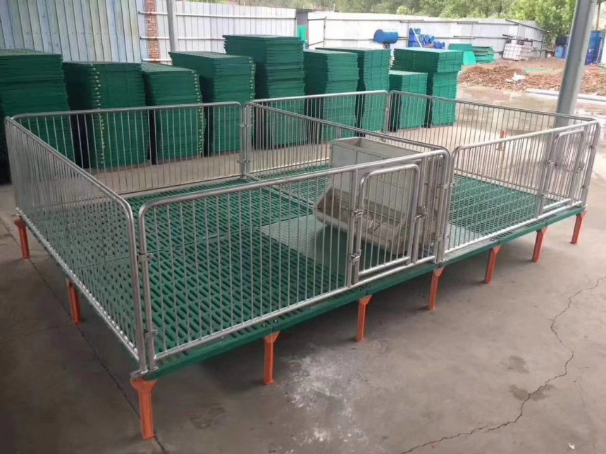 仔猪保育床可以帮助小在江湖减少猪群应激,仔猪在转群前世在产床上饲养,保育床与产床上的仔猪活动栏相似,有助于仔猪尽快适应养殖环境减少应激保育床有助于隔离粪便,降低仔猪患病率,保育床离地面30cm的高度,而且采用的塑料漏粪地板,可以给小猪提供一个清洁、干燥、温暖、空气我I新鲜的生长环境,这样能减少小猪的患病率,提高猪厂的生产效率。 新型母猪产床,母猪单体产床是猪场建设的重要组成部分,正确合理地选择猪场的机器设备,不仅能有效控制猪场环境,改善饲养管理条件,有利于卫生防疫,促进猪群正常发育和生产性能的充分发挥,还能降低饲料和饮水消耗,减轻劳动强度,提高生产效率。