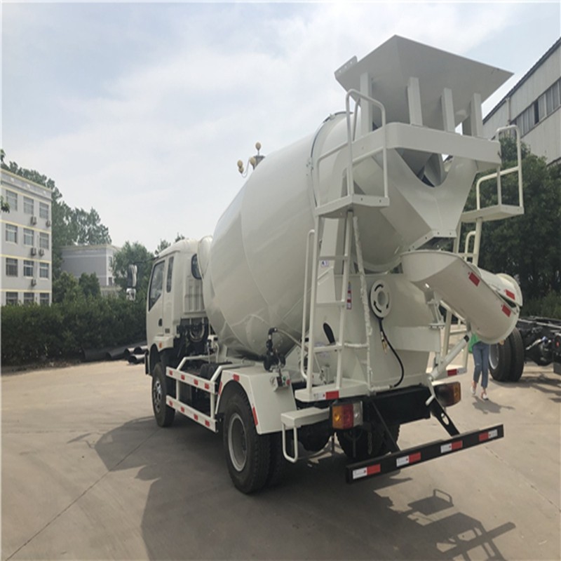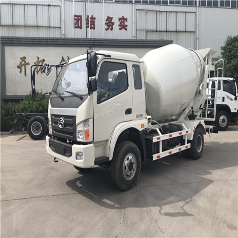 混凝土搅拌运输车由汽车底盘和混凝土搅拌运输专用装置组成。我国生产的混凝土搅拌运输车的底盘多采用整车生产厂家提供的二类通用底盘。其专用机构主要包括取力器、搅拌筒前后支架、减速机、液压系统、搅拌筒、操纵机构、清洗系统等。工作原理是,通过取力装置将汽车底盘的动力取出,并驱动液压系统的变量泵,把机械能转化为液压能传给定量马达,马达再驱动减速机,由减速机驱动搅拌装置,对混凝土进行搅拌。