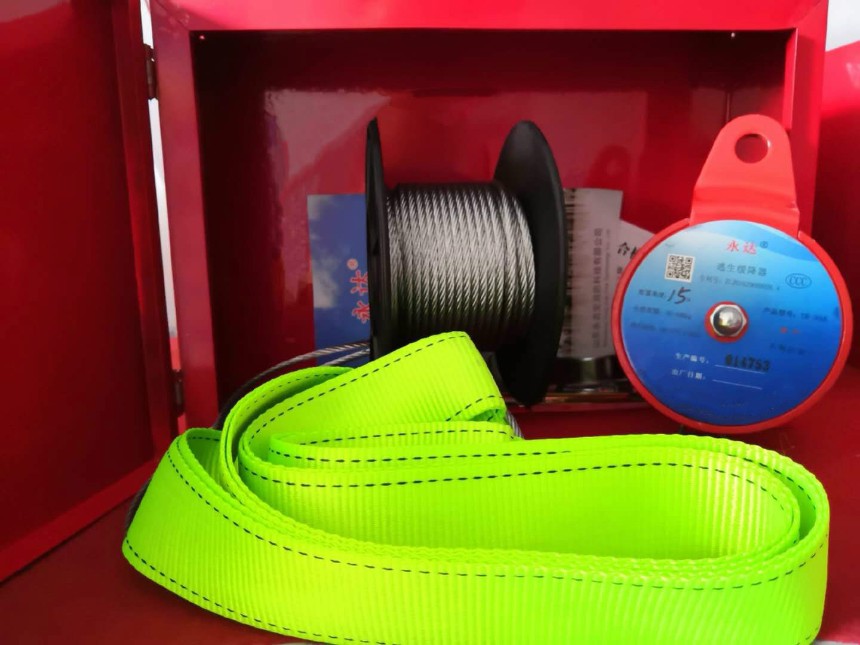 逃生缓降器是一种往复式高楼火灾自救逃生器械。当高层建筑发生火灾,浓烟烈火封闭疏散通道的危急情况下,被困人员可利用本产品安全地迅速从天而降脱离险境。