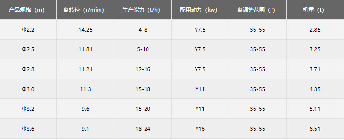 4,大盘由盘体和盘节组成,降低主电机功率,动力消耗少。盘节端部为边法兰,料球出盘时可保证料球不被拉伤、撕裂。
