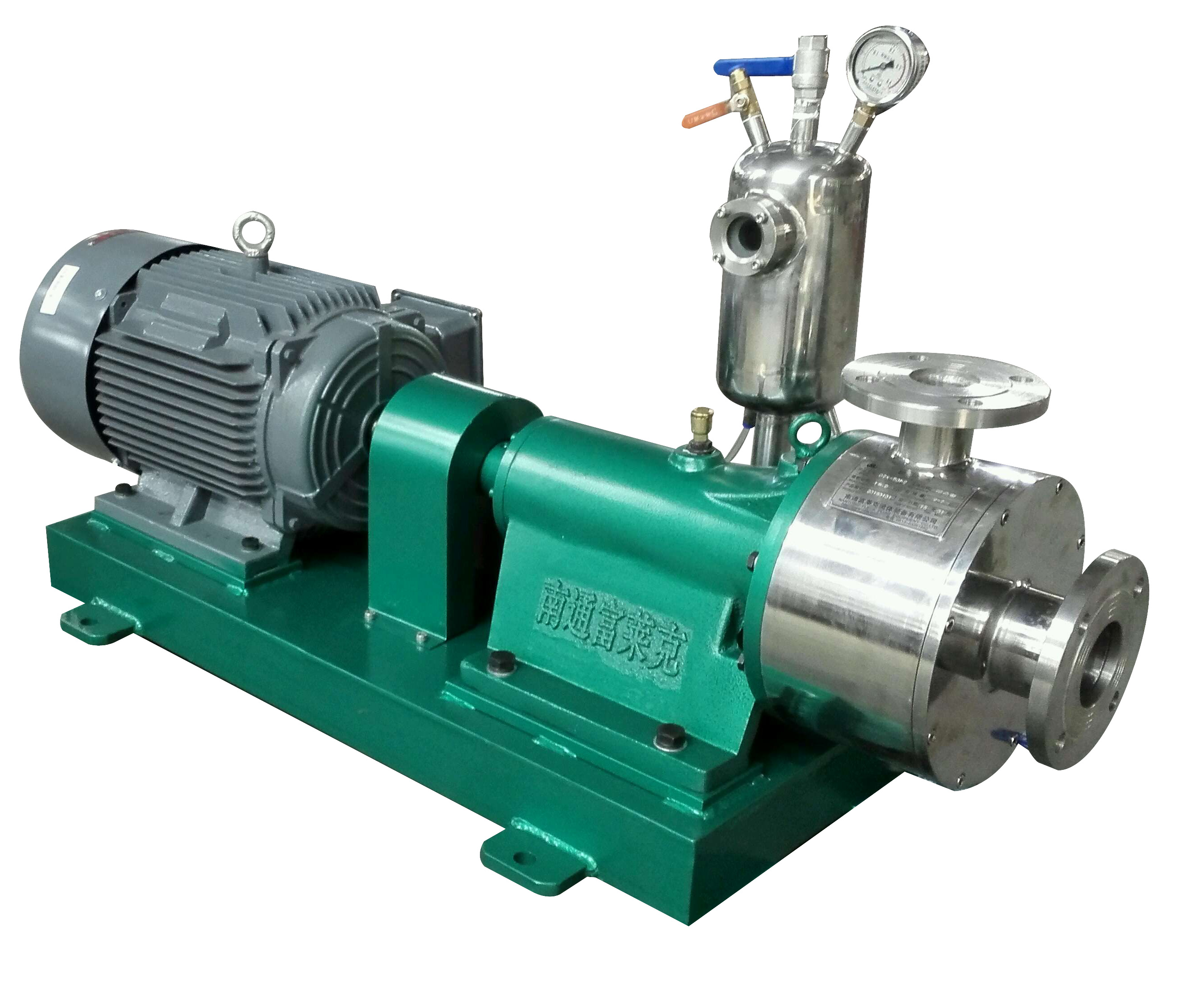 改性沥青胶体磨主要有电机、轴承座、磨头等三大部分组成、主机安装方式为卧式,电机一般采用普通电机,也可采用防爆电机。磨头的粉碎工作腔,一般采用优质不锈钢进行锻压制成,主要部件采用优质合金锻压之后经过十几道的粗、精加工后再进行全自动数控加工中心进行精密制造,其质量达到国际先进水平。工作腔内粉碎定子与转子可以进行停机手工调节,一般调节距离为0.01-2mm。磨头的外壳设有加温装置,可以利用导热油或蒸汽进行加温,其连接方式为法兰式下进上出,主机的侧面为进口,上面为出口,连接方式法兰连接。