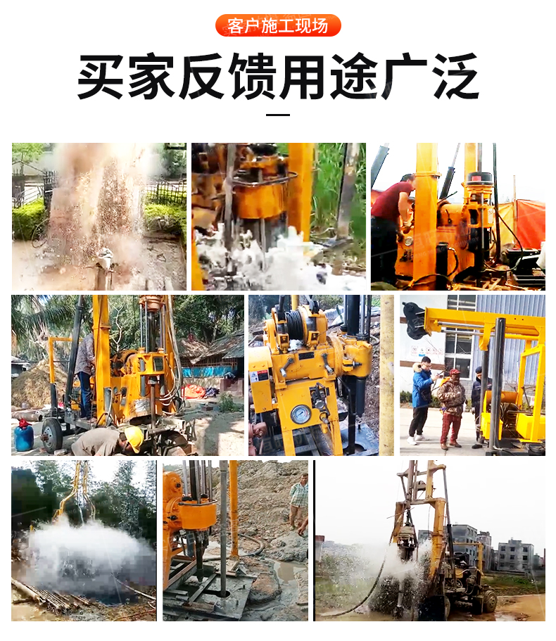 地质普查勘探,道路及高层建筑物基础勘探,以及各种混凝土结构检查孔,江河堤坝,路基灌浆孔钻孔和直接灌浆,民用水井及地温空调等。