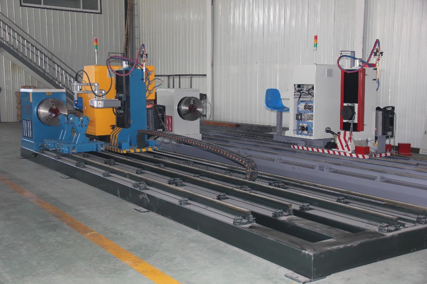 圆管切割管径60—630mm,60—800mm;方管切割尺寸100—400mm,100—500mm。等离子的坡口角度:?45?,火焰端部坡口角度:?60?、火焰主体坡口角度为55?。