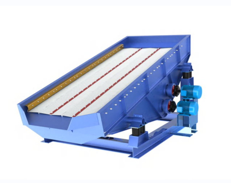 该化肥筛其筛面是靠激振装置进行振动驱动的,用于对中、细料物料的粒度分级。化肥筛在结构上的主要特点是:激振器激振、双电机驱动,不锈钢防堵筛面,筛机采用冷铆技术(传统的为焊接,冷铆技术的筛箱受力更好,寿命更长)。在工作原理上,HFS化肥筛利用了概率原理从而以很快的速度完成整个筛分过程,使物料筛分所需的时间仅为普通筛的1/2,而其单位筛面面积的处理能力比普通筛大2倍。因此,可以认为在化肥筛中所进行的筛分属于“快速筛分”。此外,化肥筛筛孔不易堵塞,一台筛分机同时可以得到几个粒级的产物,筛分粒度范围宽。