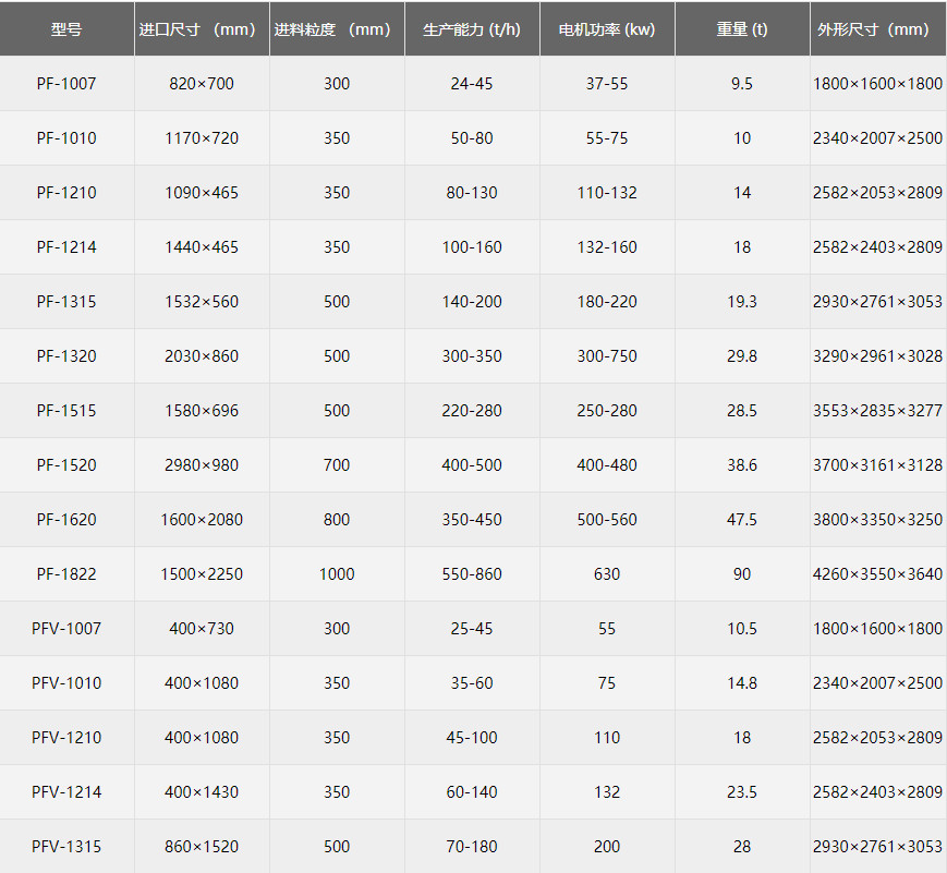 反击式破碎机的破碎腔其腔深比普通的破碎设备腔深,增加了物料次数,使物料在腔内可以获得破碎,与传统的破碎设备相比,其破碎比大、产品粒度均匀。