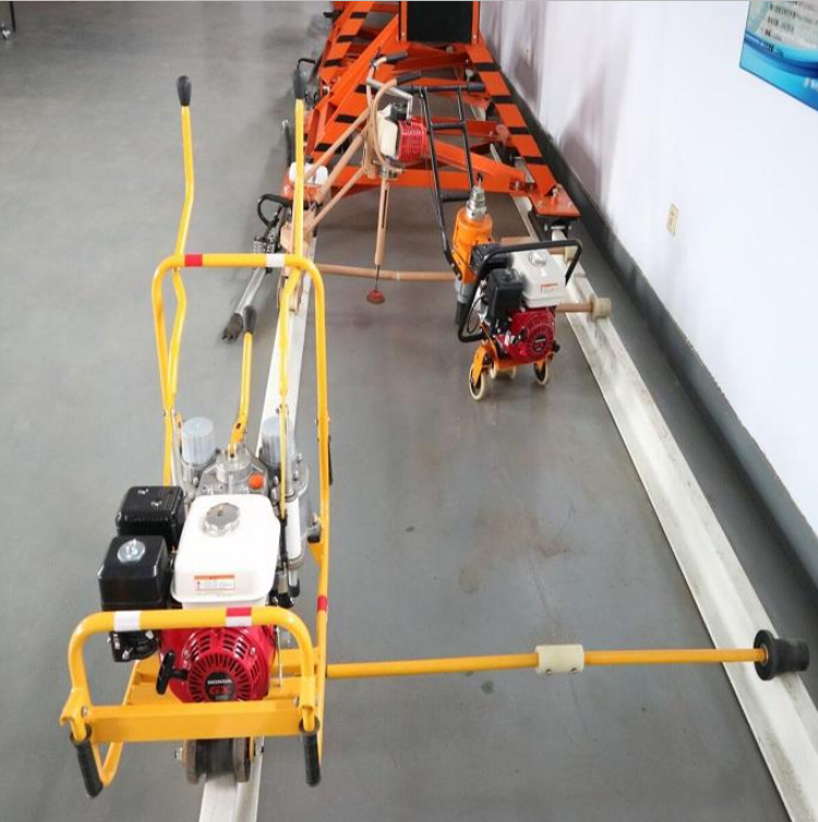 3、将扳手抬上钢轨,使前后轨行轮卡住钢轨,根据轨型调整后轨行轮高度。