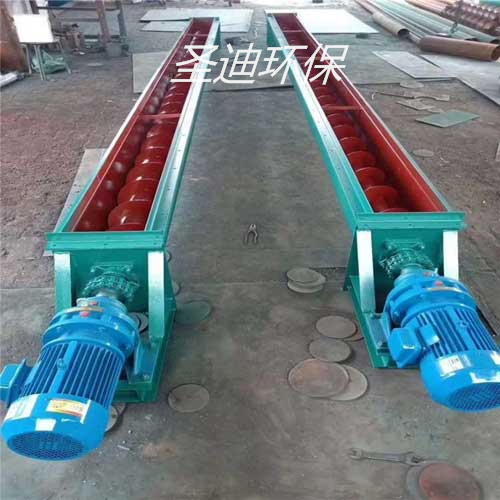 LS型螺旋输送机俗称绞龙,是矿产、饲料、粮油、建筑业中用途较广的一种输送设备,由钢材做成的,用于输送温度较高的粉末或者固体颗粒等化工、建材用产品。螺旋输送机的发展,分为有轴螺旋输送机和无轴螺旋输送机两种型式的发展过程 。有轴螺旋输送机由螺杆,U型料槽,盖板,进、出料口和驱动装置组成,一般还有水平式,倾斜式和垂直式三种;而无轴旋输送机则采用螺杆改为无轴螺旋,并在U型槽内装置有可换衬体,结构简单,物料由进料口输入经螺旋推动后由出料口输出,整个传输过程可在一个密封的槽中进行。一般来讲,我们平常所指的螺旋输送机都指有轴型式的螺旋输送机。