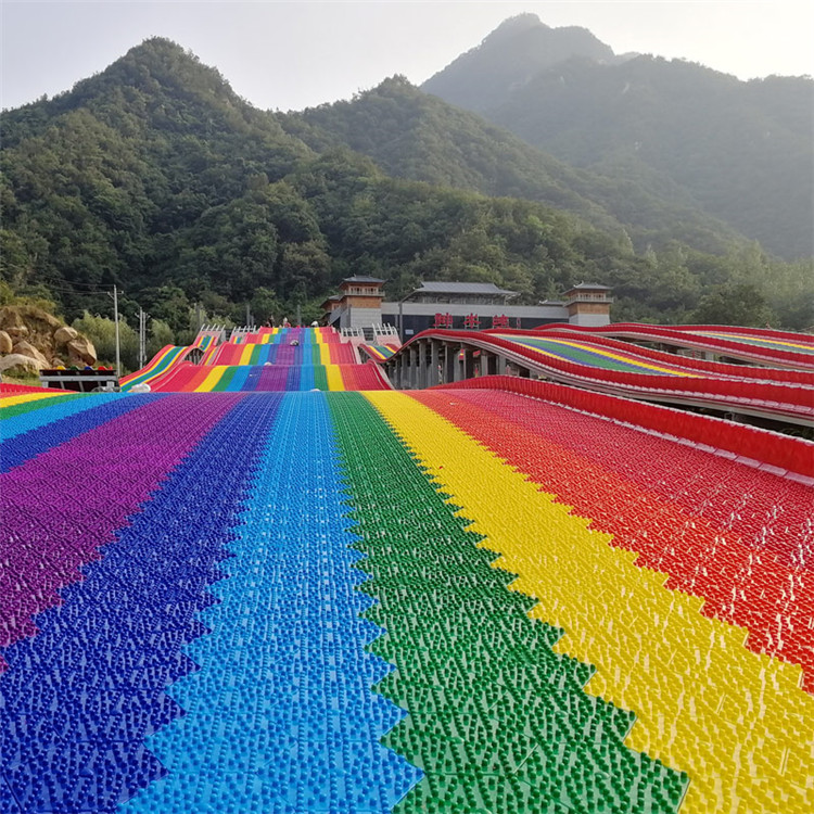 因为滑道属于大型设备,再加上鲜艳的颜色,它本身就可以形成一个主题乐园,周边可以再建设一些其他的游乐项目,餐饮项目,形成一个 的游乐场所。七彩滑道 性强,适合全家人体验。七彩滑道虽然规模比较大,但是它有良好的 保障措施。雪花片和滑道采用 塑料做成,能经受住低温和高温的天气,不会出现断裂的情况。滑道的周围有护栏,防止游客滑出去。